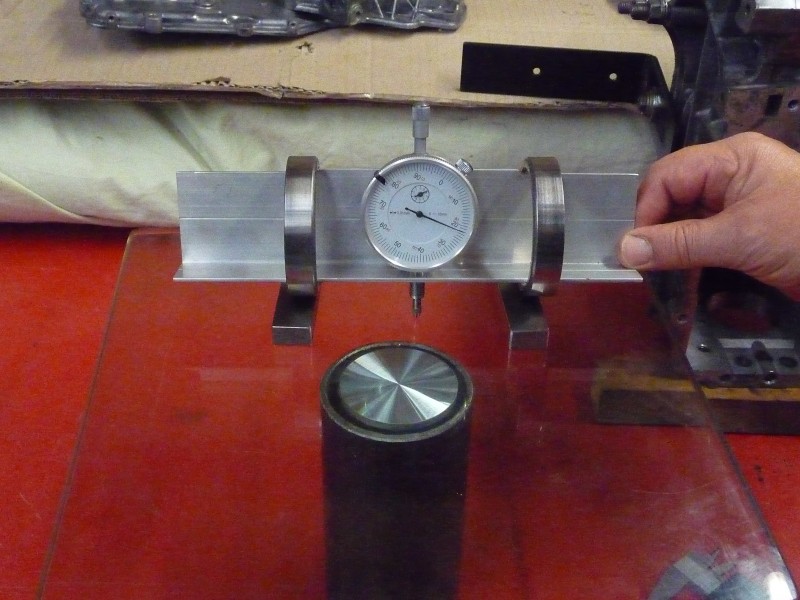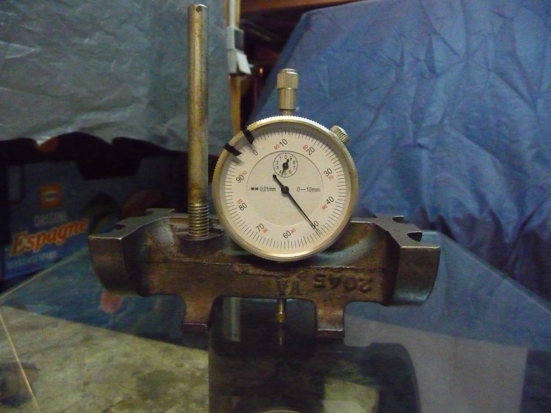 Comme vous pouvez le constater l'outil est simple et très peu coûteux.Mis à part le comparateur qui fait partie, en principe , de l'outillage de base du mècano. Il coûte de 20 à 30€ pour les premiers prix sur le net. Mais Il sert également ,entre autres au réglage du jeu d'entre-dents.