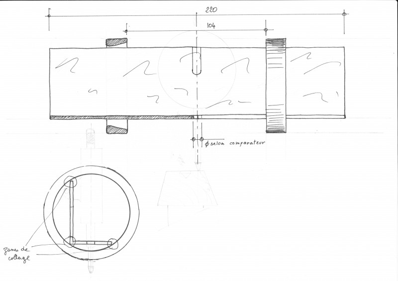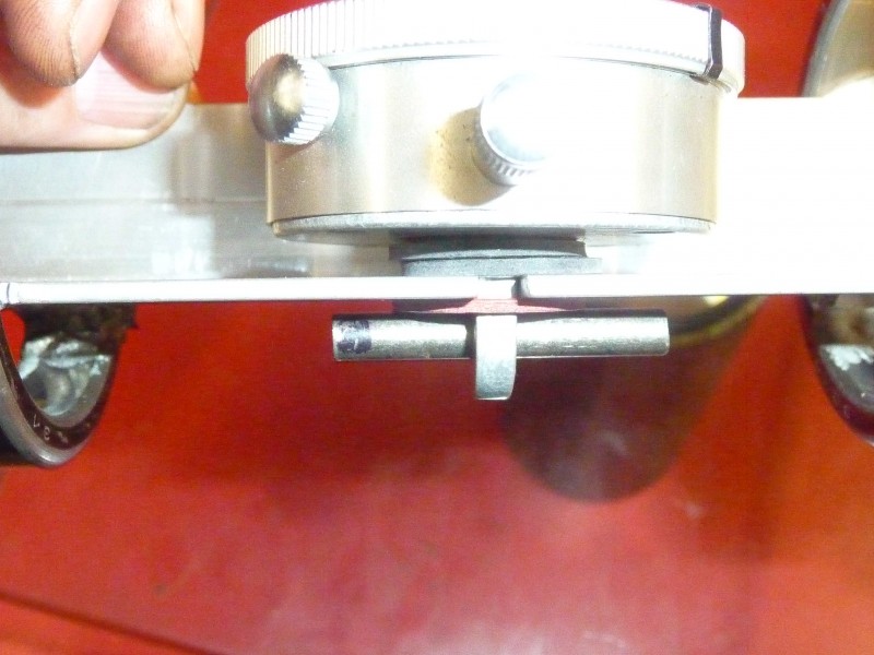 La fixation du comparateur va dépendre du modèle choisi. En particulier le trou de passage du tube du comparateur dans l'aile inférieure devra permettre le passage de ce dernier mais avec le minimum de jeu possible.